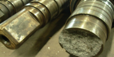 Tình trạng hư hỏng: Trục cán thép ø336mm bị gẫy đột ngột trong khi đang làm việc, đạt tuổi thọ khoảng 60% so với thiết kế. Nguyên nhân: Mỏi uốn dưới ứng suất trong khi làm việc. Các yếu tố sau đã làm gia tăng quá trình hư hỏng: